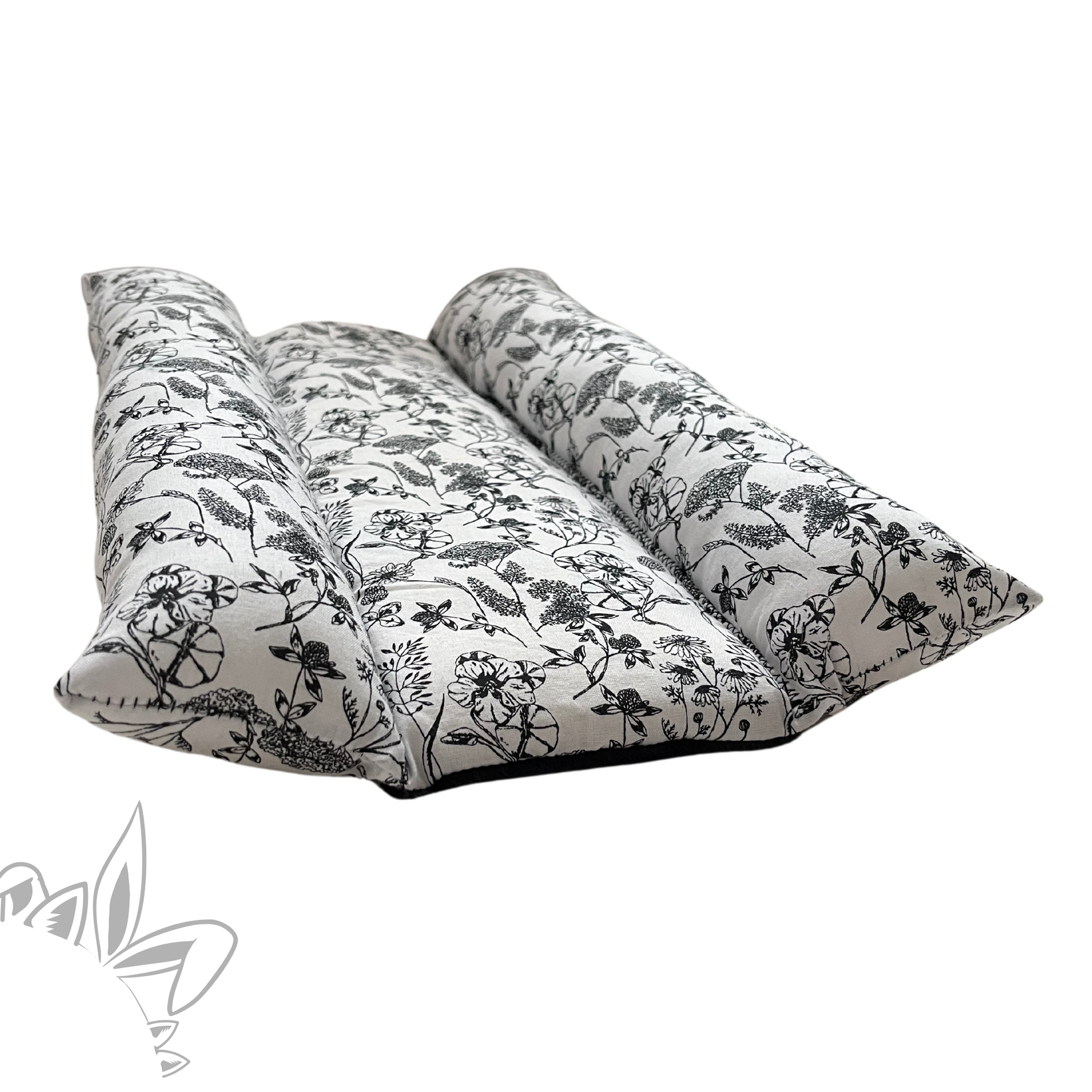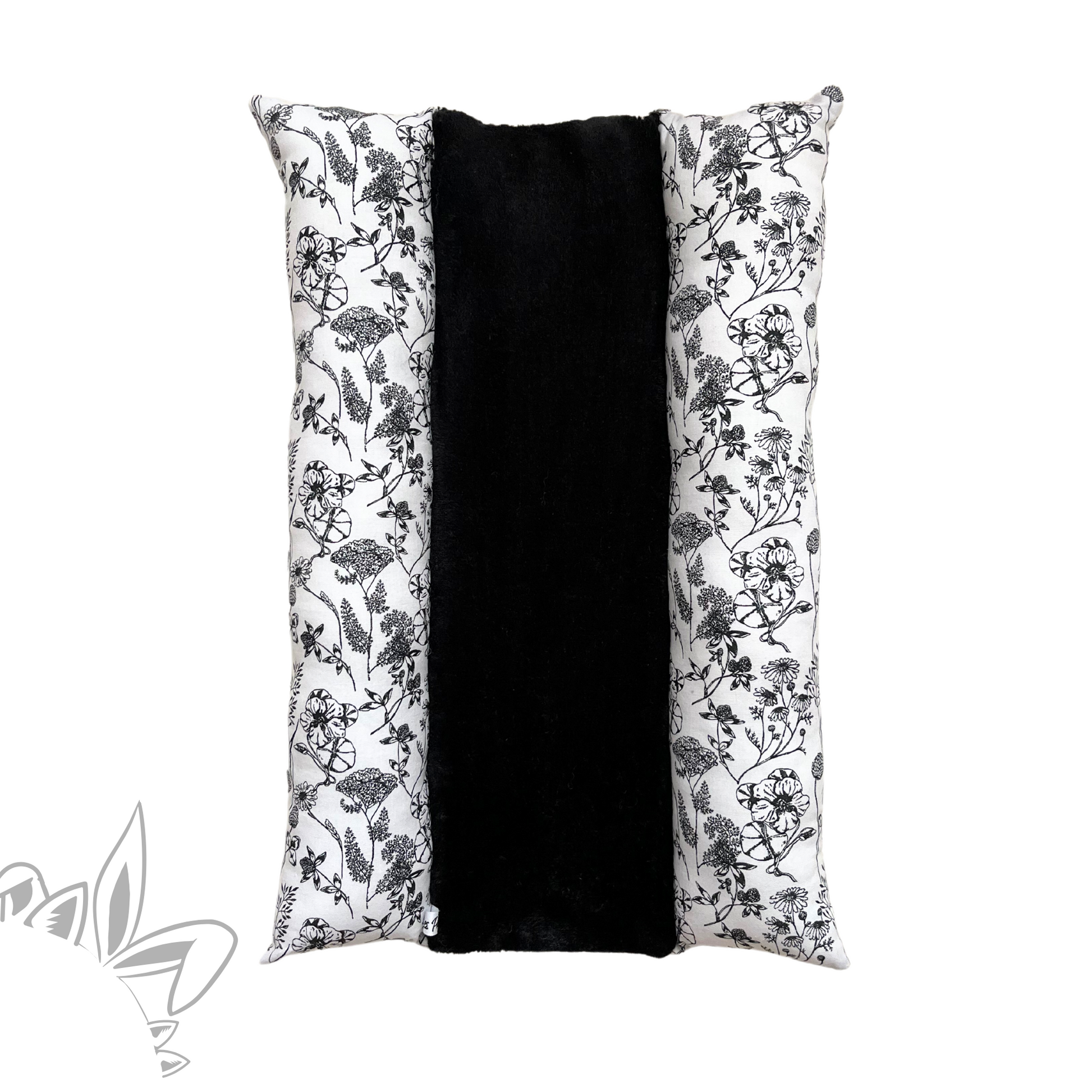 Ce coussin à boudins est composé d’un côté en tissu en polaire microfibre extrêmement doux et de l'autre en tissu Oeko-tex en coton à motif.