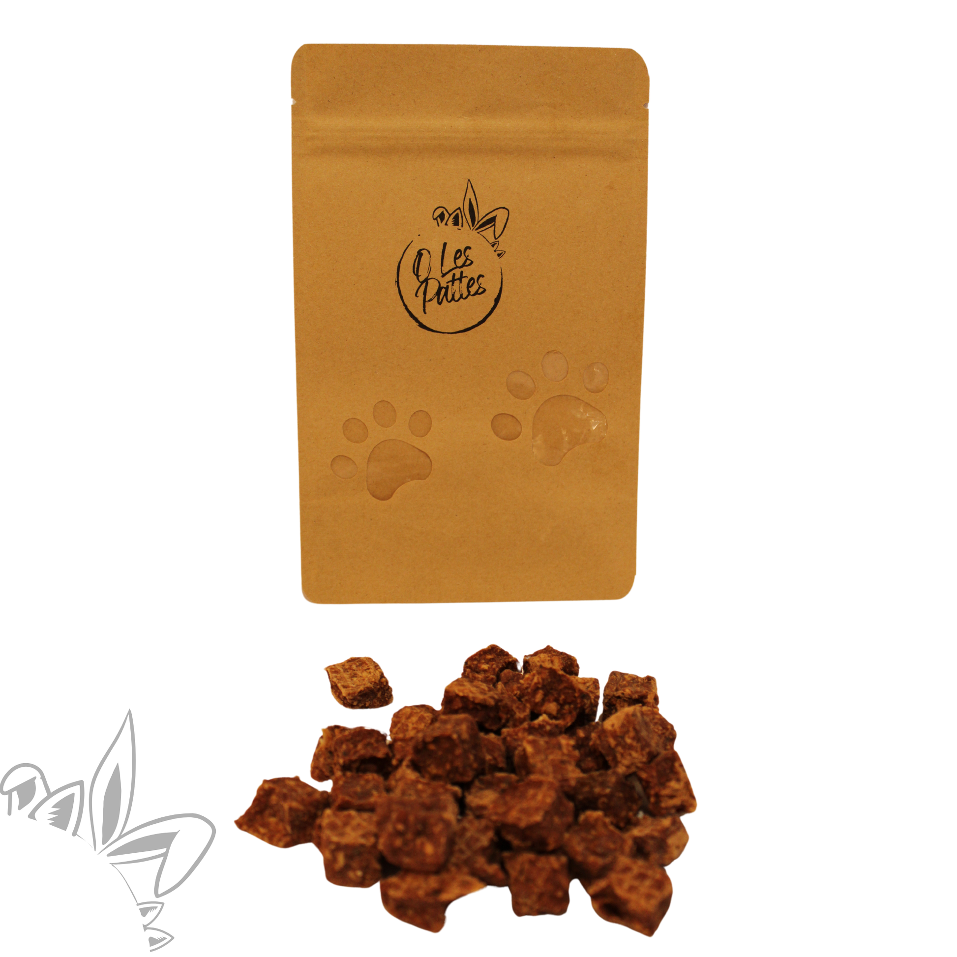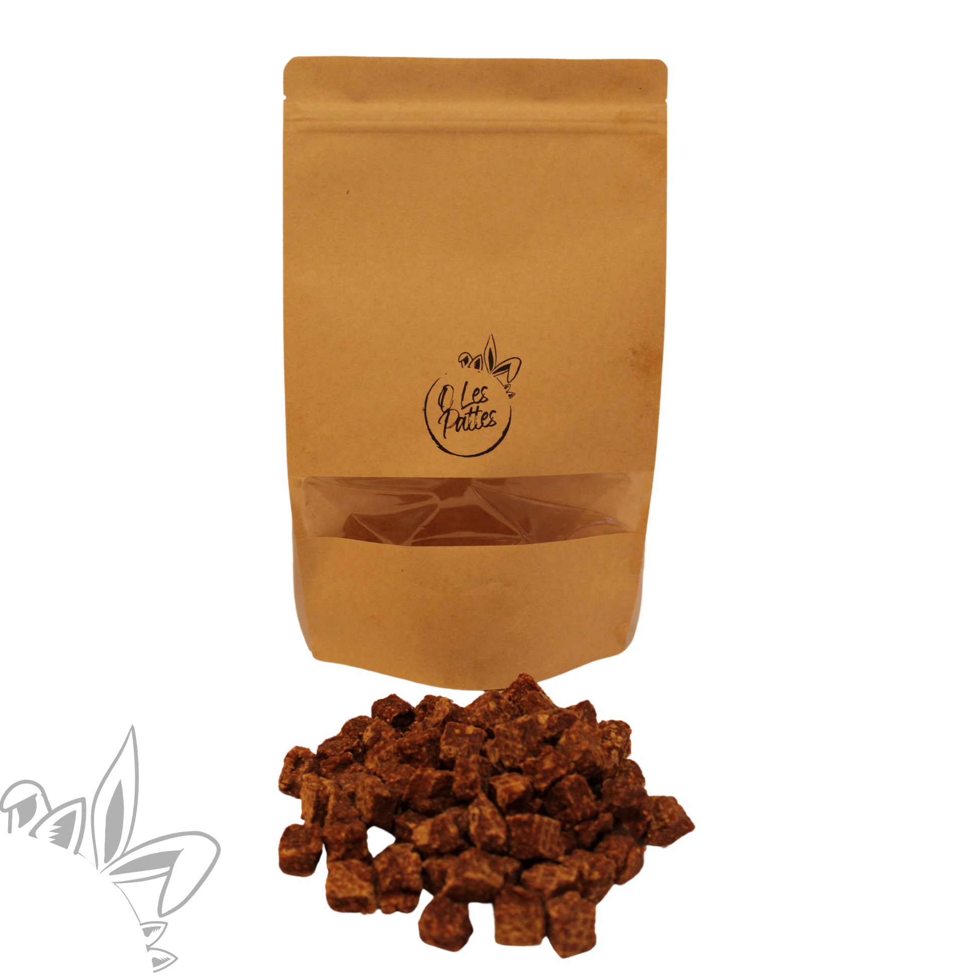 Les cubes d’autruche sont fabriqués à partir de viande d’autruche riche en protéines maigres, faible en gras et en calories. Ils contiennent du fer, du potassium, du phosphore et du magnésium, ainsi que des acides gras oméga-3 et oméga-6. Ces friandises 100% naturelles et hypoallergéniques conviennent aux chiens sensibles et sont idéales comme récompense ou pour les jeux de dépense mentale.