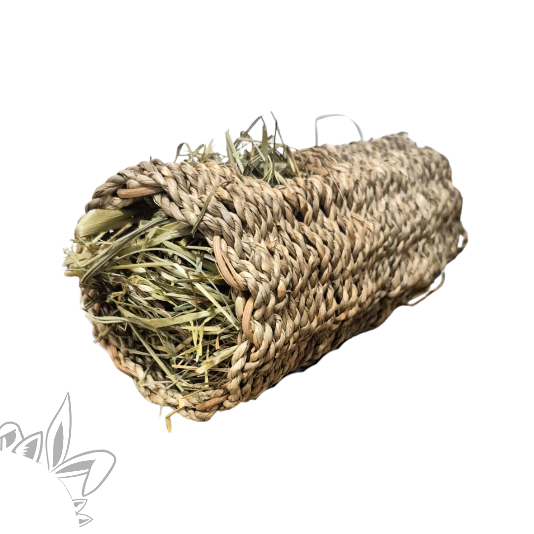Rouleau en herbe tissée fourré de foin - Jouet naturel pour lapin